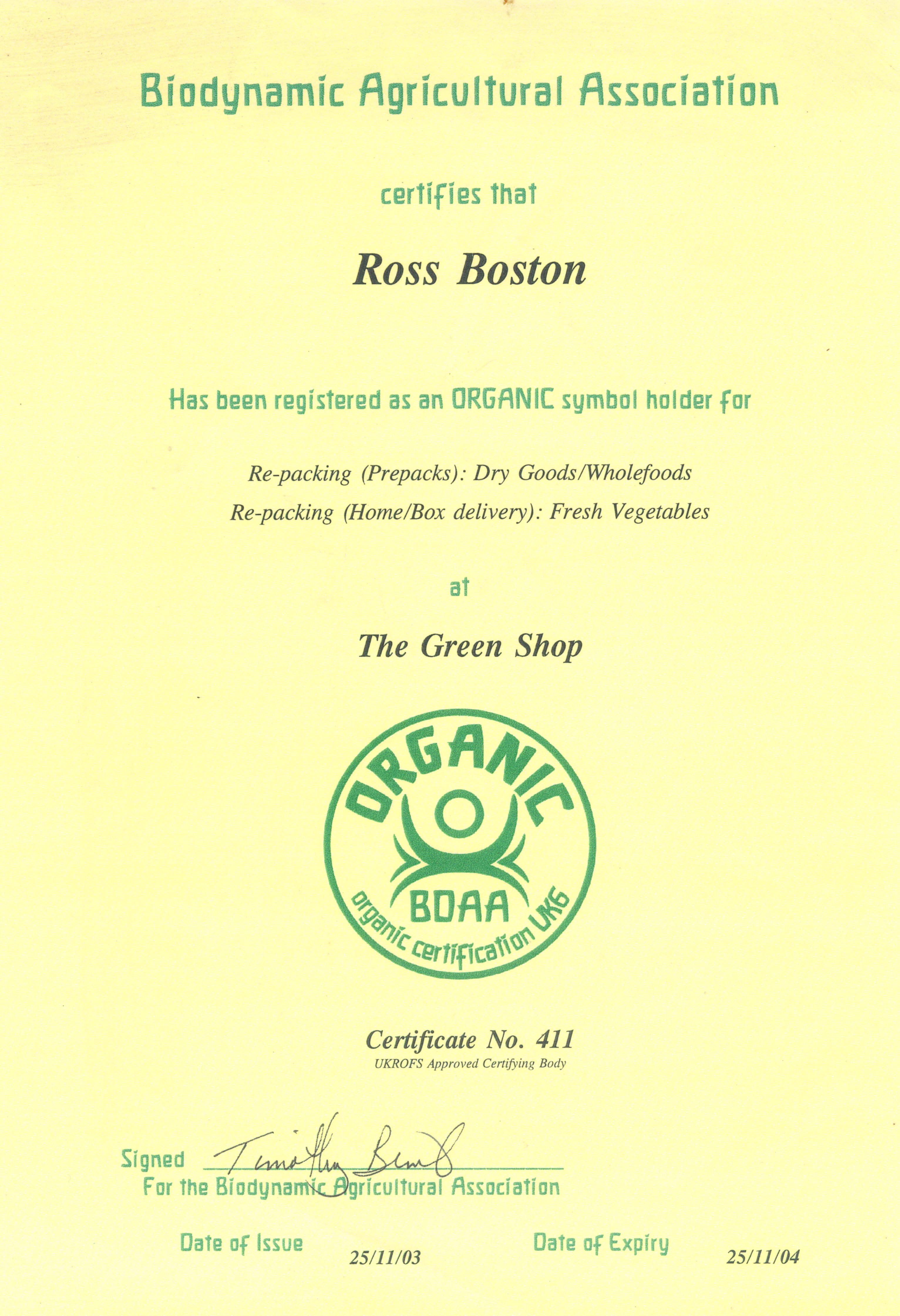 Here’s our first Certificate (ah, nostalgia), following a thorough assessment and we’ve held Organic Certification every year since: